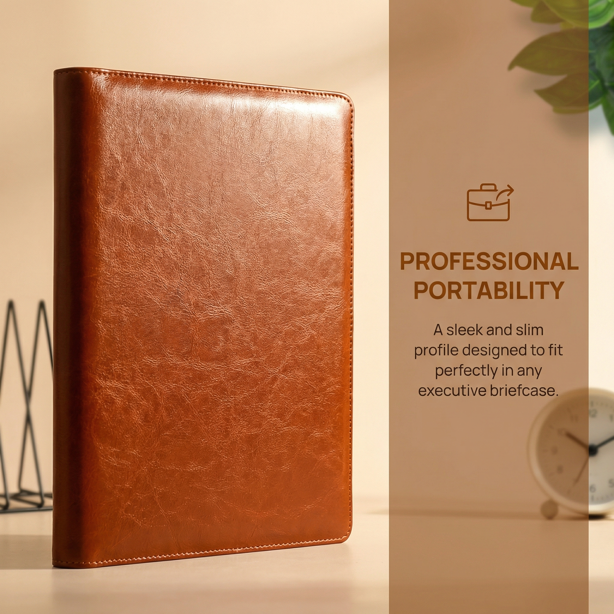 ✔ Crafted from premium PU leather, it includes a metal clipboard that securely holds up to 60–80 sheets of A4 paper, making it perfect for meetings, interviews, presentations, and daily work.